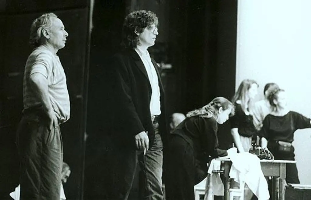 Kresnik: Ach, es ist doch so langweilig, darüber zu reden. Also, ich bestimme nicht einfach durch eine ausgedachte Choreographie den gesamten Arbeitsprozeß. Ich habe Bilder, Entwürfe, Visionen davon, wie ich eine Vorlage oder eine Stück auf die Bühne bringen will. Die konkrete Umsetzung des Stückes wird gemeinsam entwickelt. Sie entsteht überwiegend in der praktischen Zusammenarbeit mit der Gruppe durch Improvisation und Festlegungen, mit den Bühnen- und Kostümbildnern und den anderen Beteiligten.