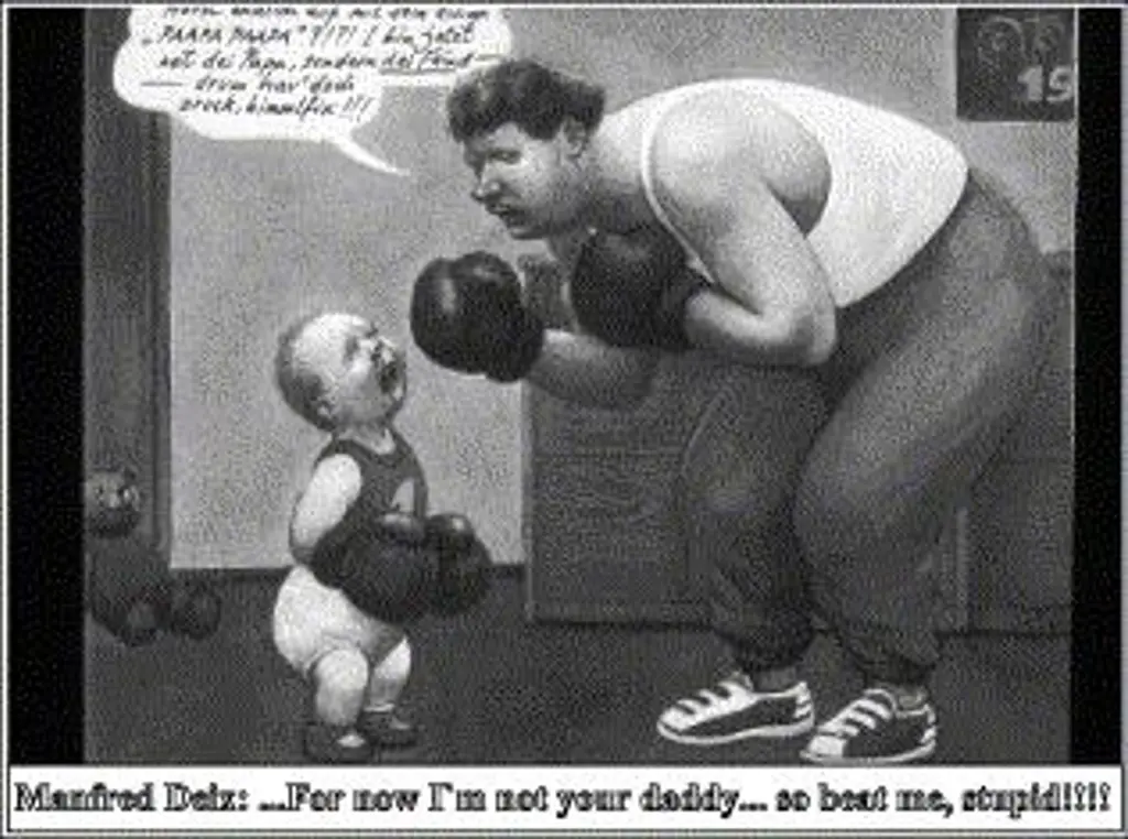 Marc Chagall has also depicted this pulling at children's ears in an etching (Fig. 65, left) from the series illustrating Gogol's "Dead Souls" (1924–1926) as commentary to the following text: ...and then there is that similarly well-known, but nonetheless unpleasant feeling when, after these words, his earlobes were painfully twisted by his father's fingers with their long nails. "Also, comics like to depict this method of education as we can see from the naughty boy Jeremiah in Lucky Luke's series "California or Death" (Fig. 65, right).