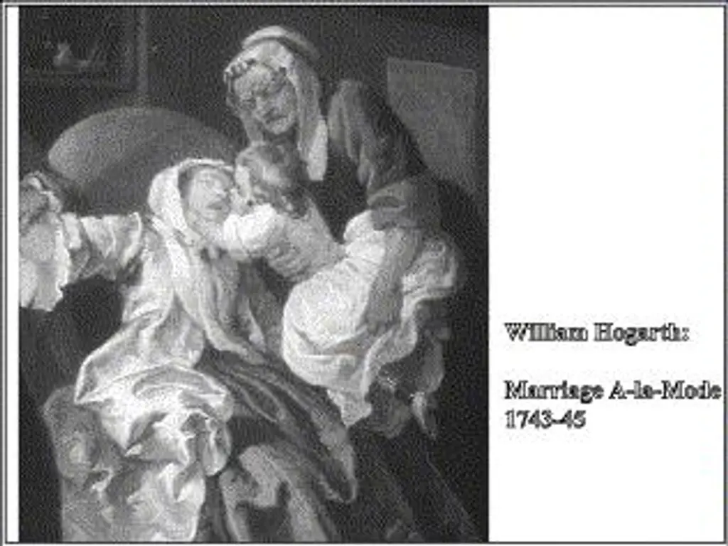 The "battered-child syndrome" is not an invention of our time. As early as the Middle Ages, we find documents telling of insane or drunken parents who injured their children with blows or even killed them. In 18th century England, many children were injured by their drunken parents. It was again William Hogarth who, as an artist, tried to fight against alcohol as here in the engraving "Gin Lane" (Fig. 61). Between 1730 and 1749, approximately 75% of all baptised children under 5 years died, very often due to alcohol embryopathy and early abuse of gin. Probably this microcephalic infant, thrown down to death by her drunken mother, had this symptom of alcohol embryopathy.