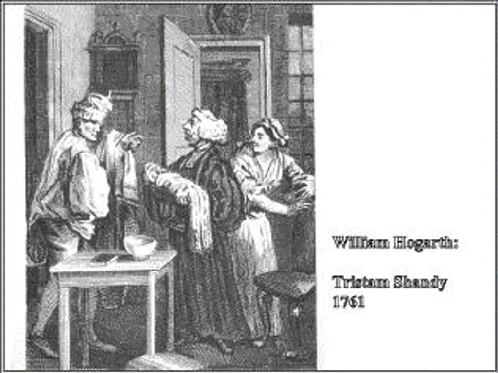 The injury of the newborn's nose during the act of birth and its repair was described by Laurence Sterne in his book: "The Life and Opinions of Tristam Shandy, Gentleman" (Fig. 16). We read: "This unfortunate drawbridge of yours, quoth my father... God bless your honour, cried Trim, 'tis a bridge for master's nose. In bringing him into the world with his vile instruments, he has crushed his nose, Susannah says, as flat as a pancake to his face, and he is making a false bridge with a piece of cotton and a thin piece of whalebone out of Susannah's stays, to raise it up". We can see that the method of nasal reposition in newborns has remained the same, though with different instruments.