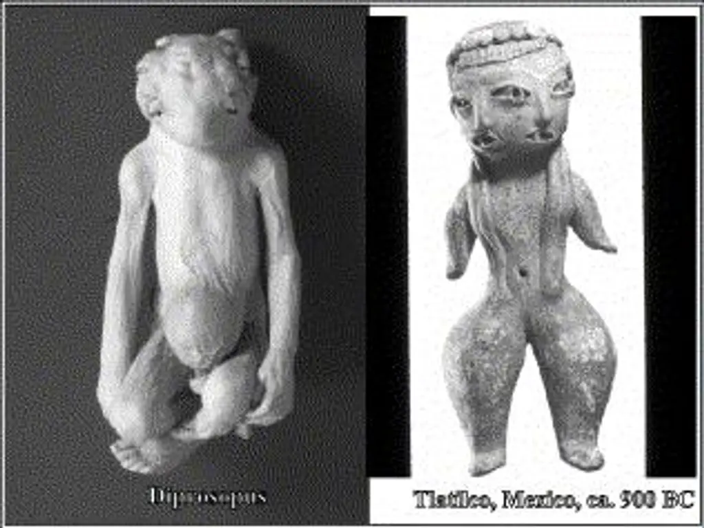 Artists have depicted dwarfism, as in achondroplasia, for thousands of years. Fig. 22 shows an achondroplastic dwarf from the Late Period of Ancient Egypt with the typical frontal bossing, saddle nose, and short, deformed extremities.