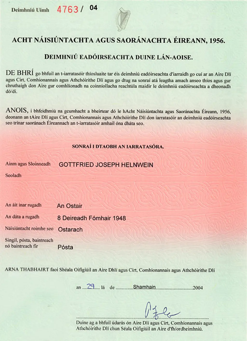 "I regard it as entirely beneficial that foreign artists and writers settle in Ireland, while our own are encouraged to stay. Ireland benefits by being reflected in some of their work. I see no sense in changing the laws that have been very successful since being introduced by Charles Haughey as Minister for Finance in 1969."