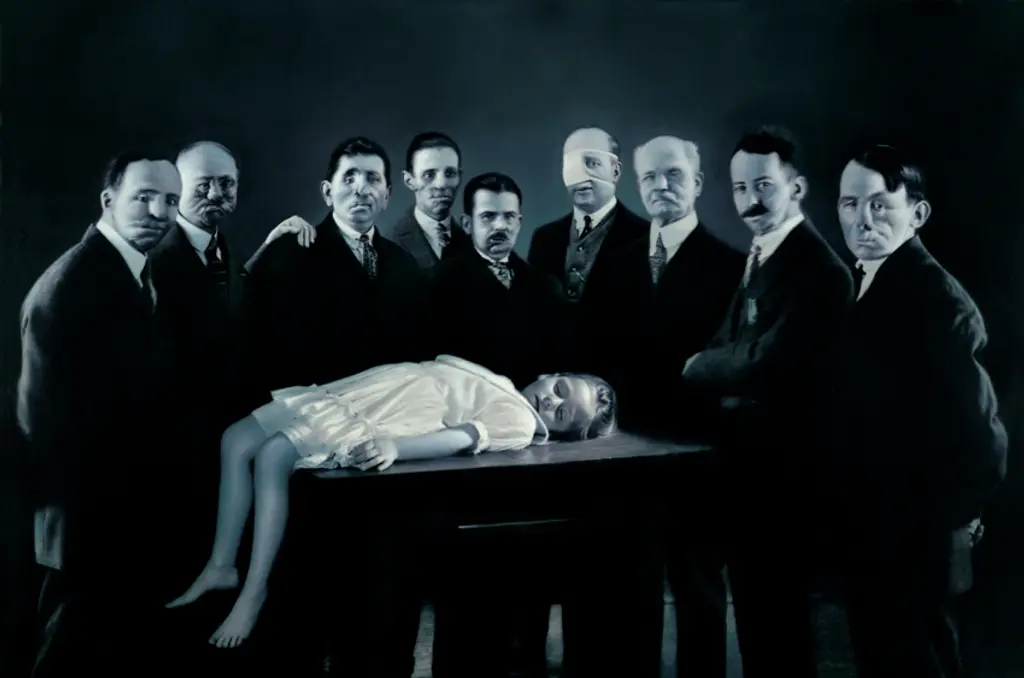 Наследник Бойса1 и Уорхола, он продолжает их традицию, ведя собственную игру с художественными приемами. Большое влияние на Хельнвайна оказала атмосфера Вены 60-х годов. Тогда он посещал Экспериментальный институт высшего графического образования (1965-1969) и в знак протеста против академической рутины резал руки лезвием, чтобы не делать невыносимо скучных графических набросков. Общество оставило протест без внимания, но остро реагировало на странную беззащитность чужих ран. «Человек с изъянами воспринимается как мученик», — понял Хельнвайн. Тогда он почувствовал, что «с помощью эстетики можно многое изменить в этом мире».