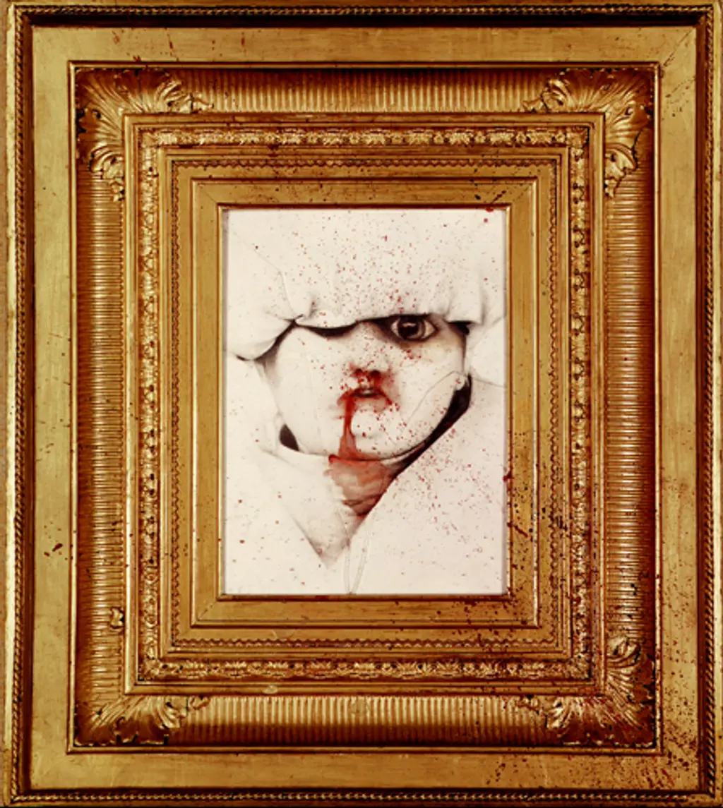 Und um die Diskussion geht es ihm, wie schon das bewusst in Blubo-Manier gemalte Hitler-Bild, das das Entree zu dieser Schau bildet, zeigt. Dann kommt ein halbes Duzend geradezu penibel gezeichneter (mit ganz feinem Buntstift) Bilder, die in ihrer elegant schockierenden Brutalität keiner Erläuterung mehr bedürfen und das Hitler-Bild erst so richtig verständlich machen. Zwei blutbespritzte Kleinkinder mit Messer, von denen das eine bereits "erledigt" ist, eine bildhübsche Mädchenlarve, die mit unschuldiger Miene ein ermordetes Kind (oder nur eine Puppe?) auf dem Schoss hält.