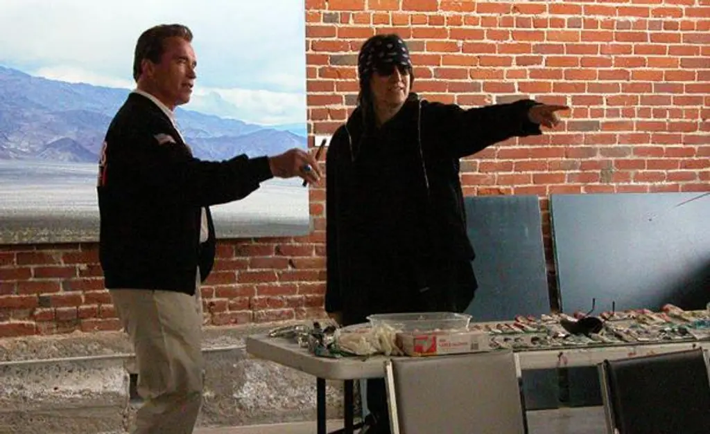 Governor Arnold Schwarzenegger visits Helnwein in his Los Angeles studio