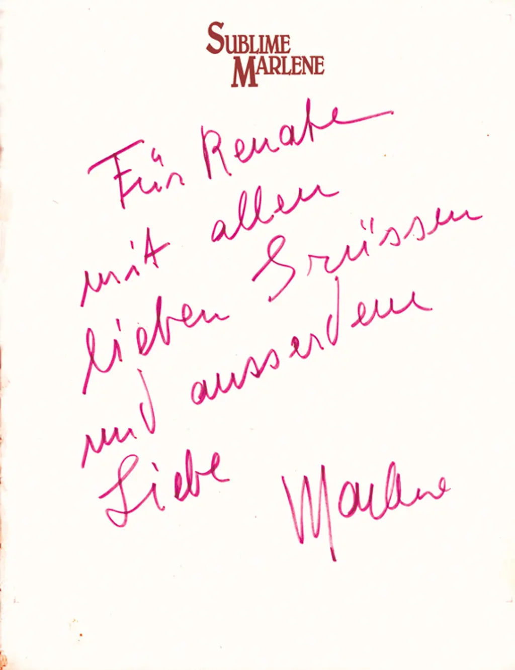 "But she read a lot of newspapers and magazines from Germany and the U.S. She was extremely well informed and loved to talk on the phone for hours." Her commentary for the book,Helnwein noted, was in English. She always wrote in English and preferred to talk in English or French. But with us she spoke German." Helnwein said that in her later Years Dietrich expressed little interest in her old films. "She was much more interested in people. People she considered very important, and I think (Ernest) Hemingway was one of the important persons for her (in her life)."