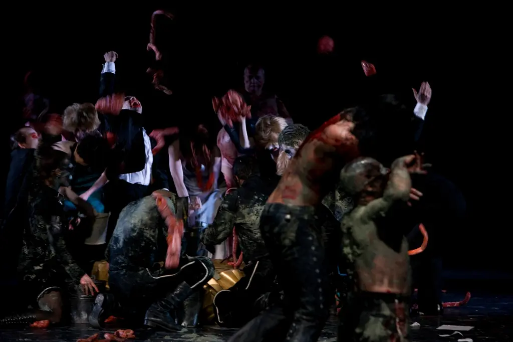 Keine Frage, dass Kresnik in früheren Stücken schon Ekligeres kübelweise auf die Bühne gekippt hat. Kresnik bietet auch diesmal die unverzichtbaren männlichen und weiblichen Nackedeis, und auch mit blutroter Farbe und getürkten Innereien wird herumgespielt. Es ist nicht nur so, dass wir uns an Kresniks Provokationen gewöhnt hätten.