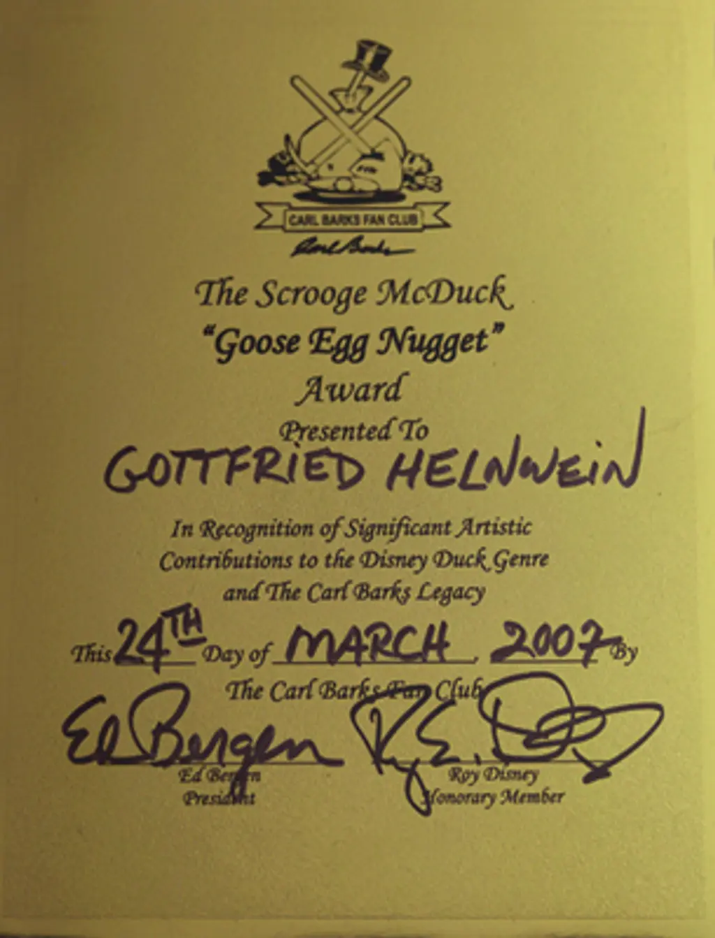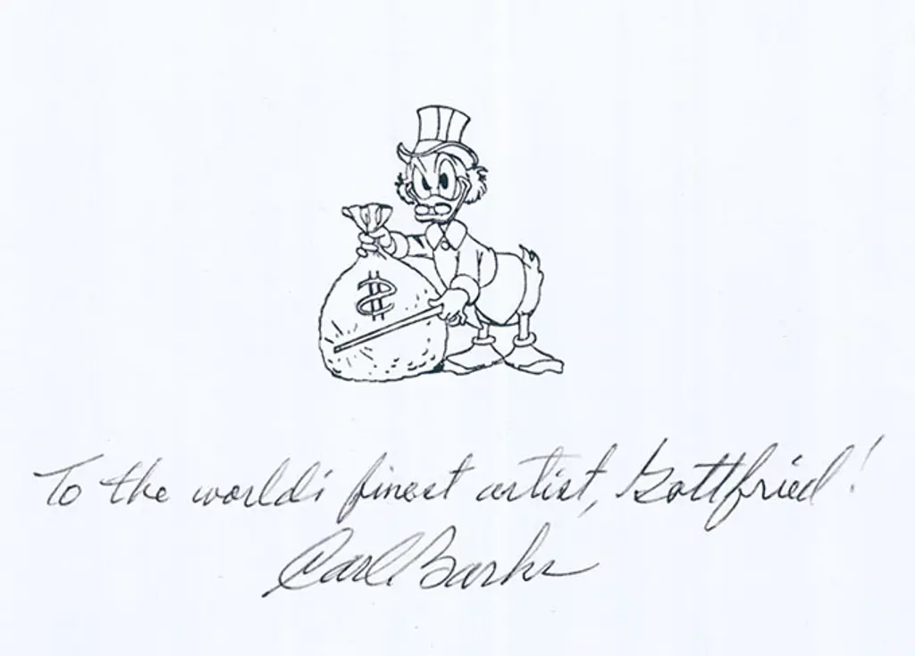 "Wir sind Gottfried Helnwein zu großem Dank verpflichtet, dass er die erste bedeutende Ausstellung von Barks' Kunstwerken und den damit verbundenen Katalog ermöglicht hat. Gottfried Helnwein, selbst ein anerkannter Künstler, hat der Kunstwelt mit diesem Projekt einen großen Dienst erwiesen, indem er über 200 Arbeiten des Künstlers für dieses wirklich bedeutsame Ereignis zusammengestellt hat."