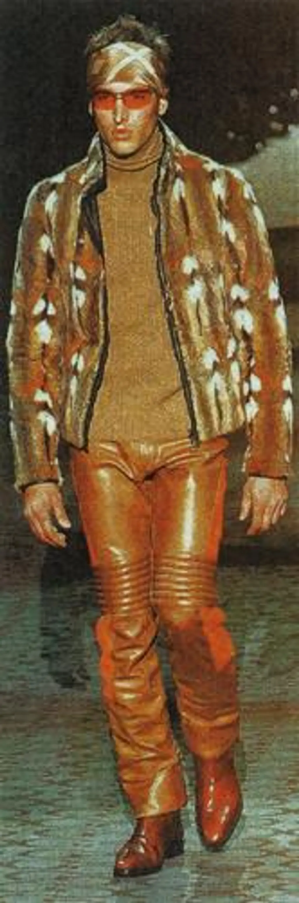 Pelz, Kaschmir und Leder, die coole Hose gepolstert, die Stirn betucht: