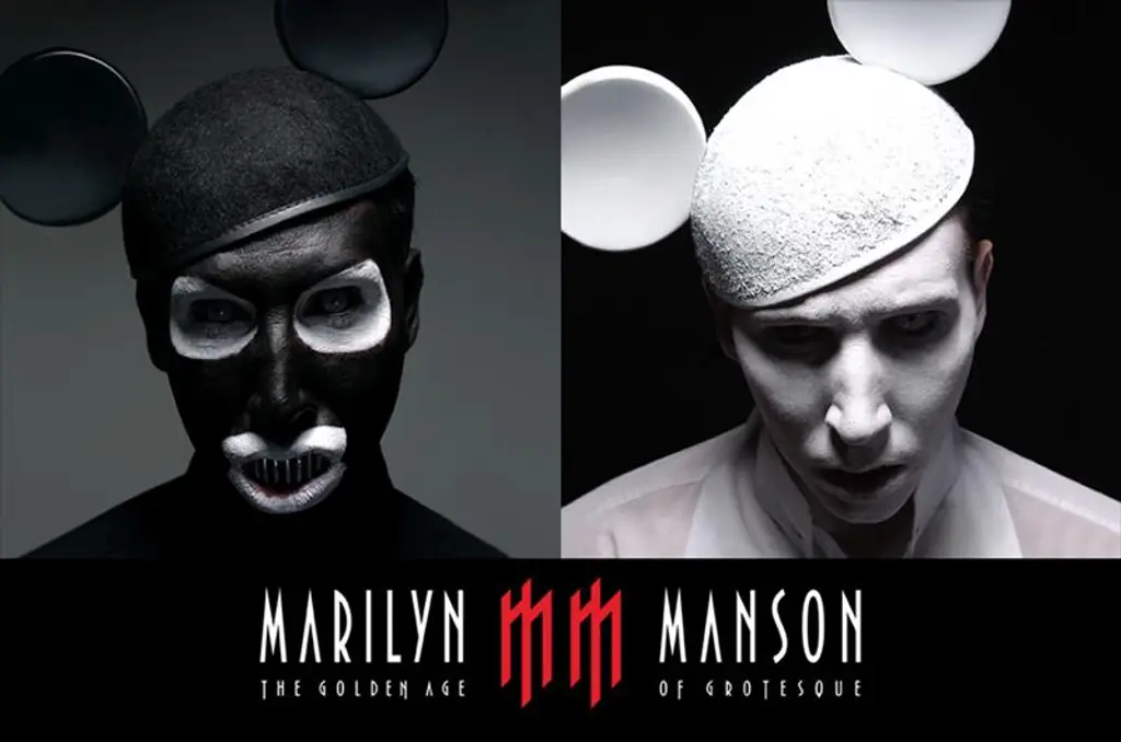 Directed by Melina Matsoukas (who's helmed videos for the likes of Beyoncé, Eve and Lady Gaga), "Hard" is a high-gloss, expensive-looking thing, featuring Rihanna wearing a Mickey Mouse helmet à la Gottfried Helnwein and Marilyn Manson.