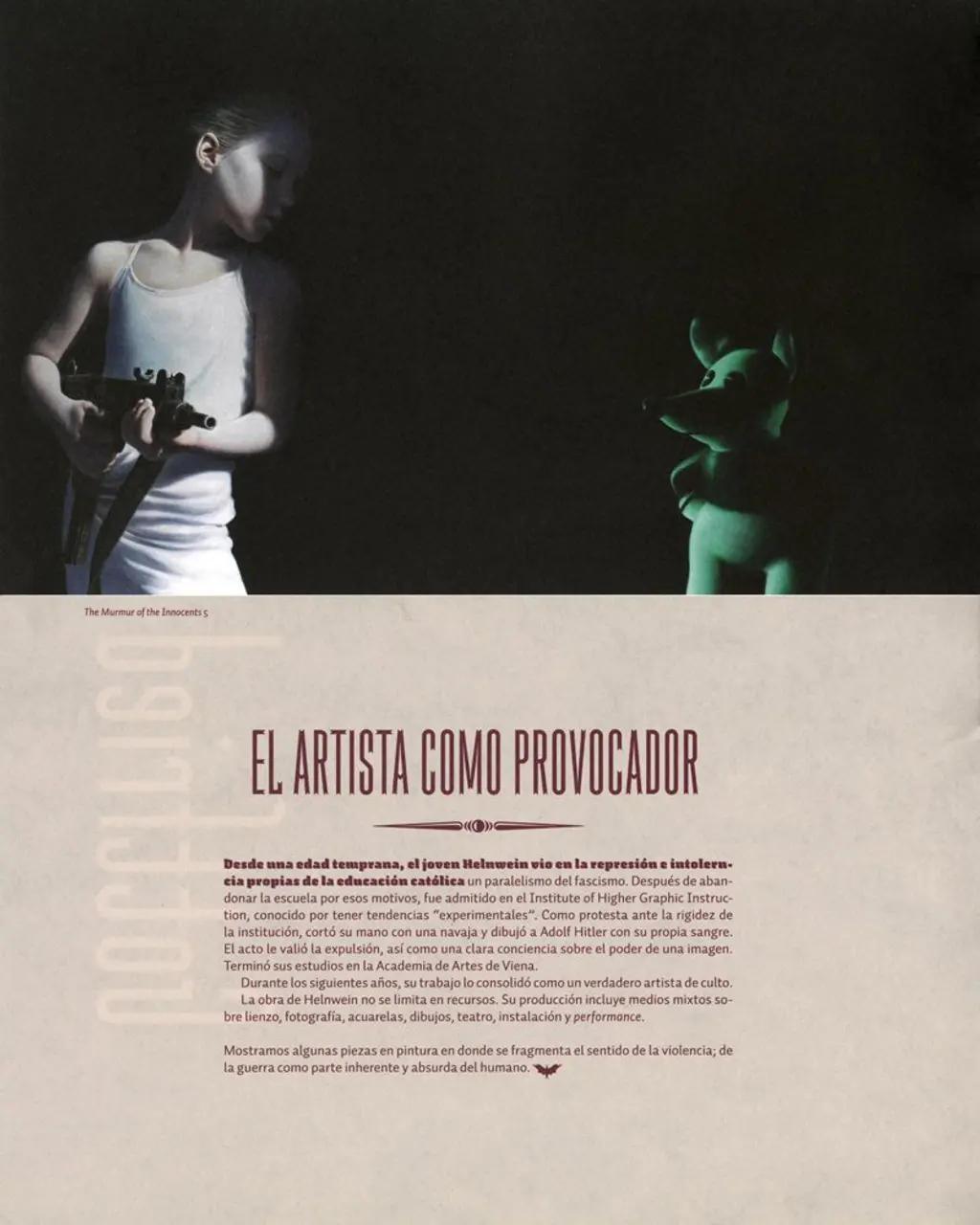 Durante los siguientes años, su trabajo lo consolidó como un verdadero artista de culto. La obra de Helnwein no se limita en recursos. Su producción incluye medios mixtos sobre lienzo, fotografía, acuarelas, dibujos, teatro, instalación y performance.