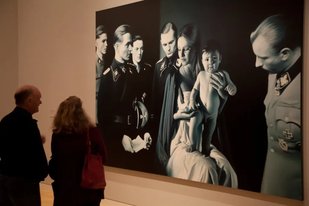 Helnwein deliberately evokes the disillusioned view of childhood promoted by another Viennese eminence, Sigmund Freud. But he also fingers the global entertainment industry as an infernal influence, using meticulous realism to place oddly irreal figures borrowed from Disney and anime on a common footing with his human subjects.