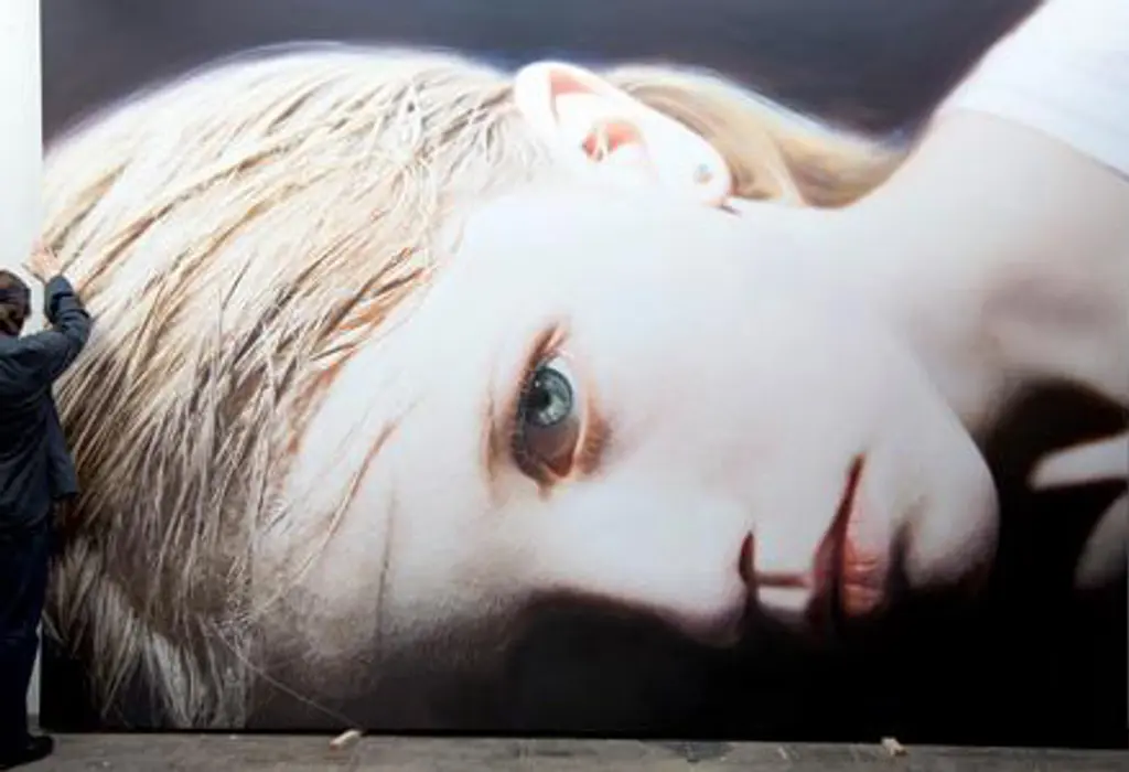 En otras piezas, como “Anunciación”, Helnwein usa a los personajes de Disney como símbolos de descubrimiento, modernidad y un mundo a punto de romperse. En “Anunciación”, Mickey Mouse aparece con una sonrisa que es una mueca; el ratón nunca se había visto tan hecho de material de pesadillas. La mayor parte de las obras de Helnwein en Fe, esperanza y caridad son pinturas que no parecen pinturas. Son cuadros de gran formato, hechos en técnica mixta de óleo y acrílico. Hace falta ver muy de cerca cada obra para poder ver la acción de la pintura. Si nadie lo dice, uno juraría que lo que ve son fotografías.