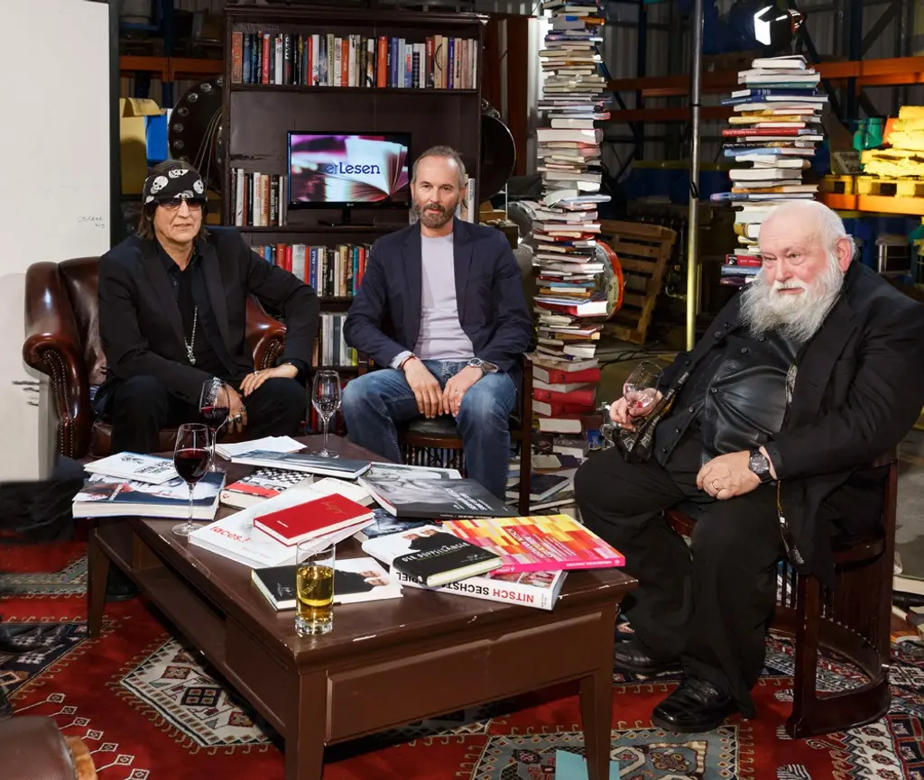 Was ihm abgeht so fern der Heimat? „Der ordinäre Wiener Dialekt“ – und Helnwein gibt gleich ein paar Geschichten preis, wo in Gläser „gebrunzt„ wurde oder der Kellner als „Beidl“ beschimpft wurde.