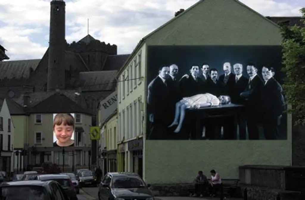 One of the most exciting aspects of prgramming the visual arts for the Kilkenny Arts Festival has to be the organic nature of the event, the opportunity it affords to take ideas and allow them to grow and develop. The interaction between the people involved is what makes these exhibitions so special. In this showing of new and existing works by Gottfried Helnwein what started as a small part of the visual arts programme has, because of the power of the artist and his work and the openness of the whole festival team involved, grown to make a substantial statement and to produce an exhibition that is very particular to this city. Although some of the works have been shown in other cities around the world, the particularity of the chosen sites and the involvement of the local community make this an exhibition not just about the artist and his work, but also about the people of Kilkenny.