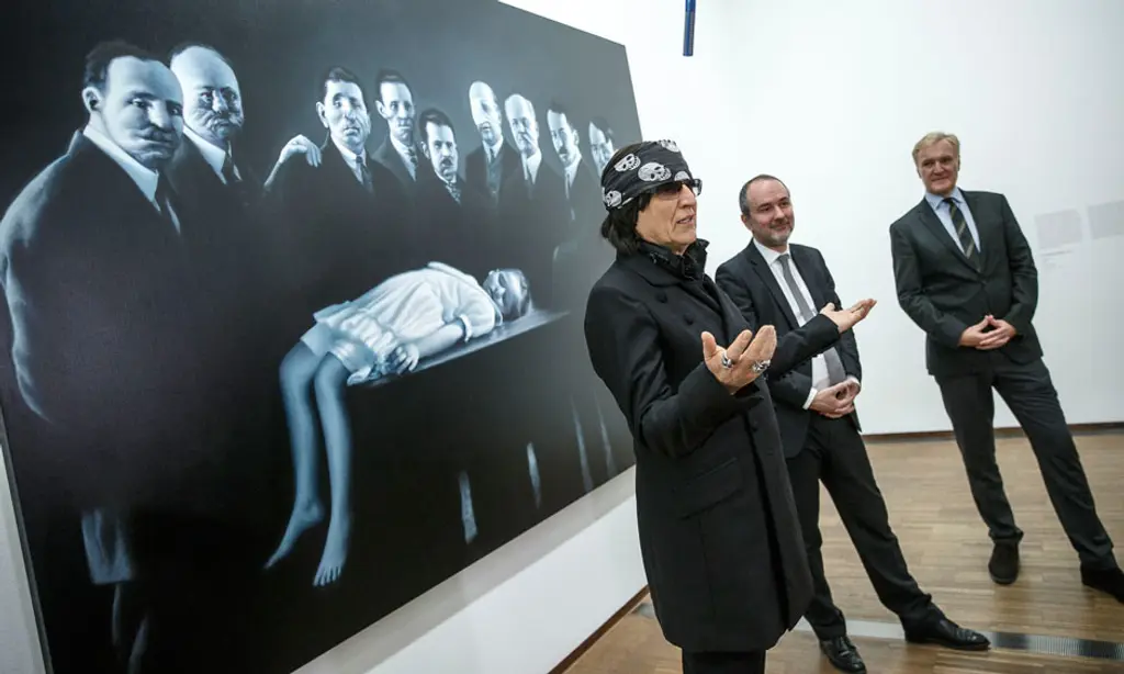 Die Verbindung zwischen Helnwein und der Albertina reicht weit zurück. Hier fand auch die erste große Einzelschau des hyperrealistischen Malers mit Faible für Schockelemente statt. Es folgten weitere Zusammenarbeiten und schließlich 2013, zum 65. Geburtstag des Künstlers, eine große und höchst erfolgreiche Retrospektive. „Ich war von den gewaltigen emotionalen Reaktionen überwältigt“, sagte Helnwein bei der Pressekonferenz am Dienstag über die Schau. „Das hat mich sehr gerührt.“ Nicht zuletzt deshalb habe er sich zur Schenkung der sieben Werke entschlossen.
