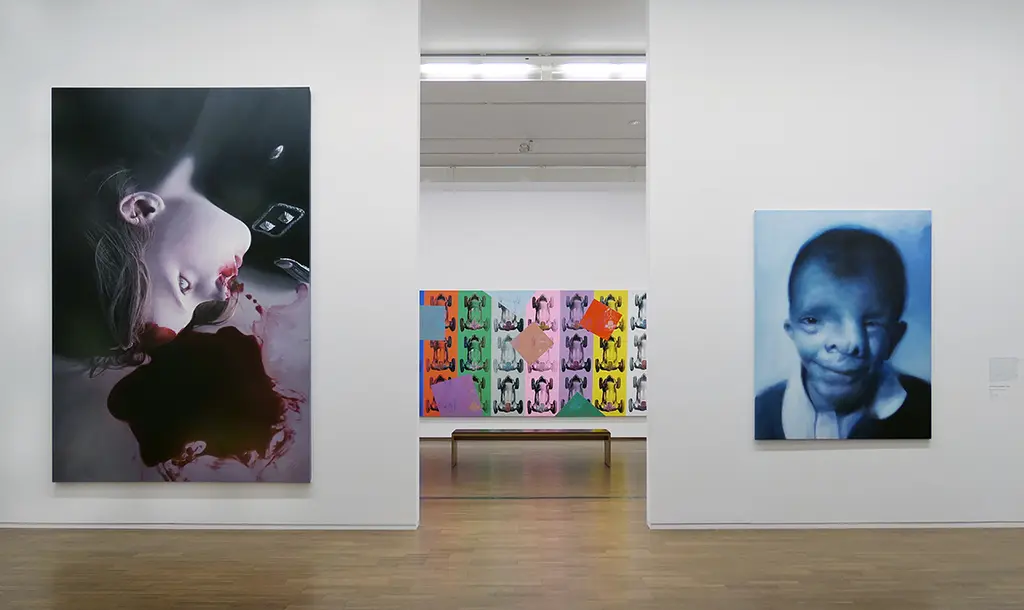 A Room featuring Helnwein's Art at the Show "Contemporary Art, Andy Warhol to Anselm Kiefer" at the Albertina Museum, Vienna.