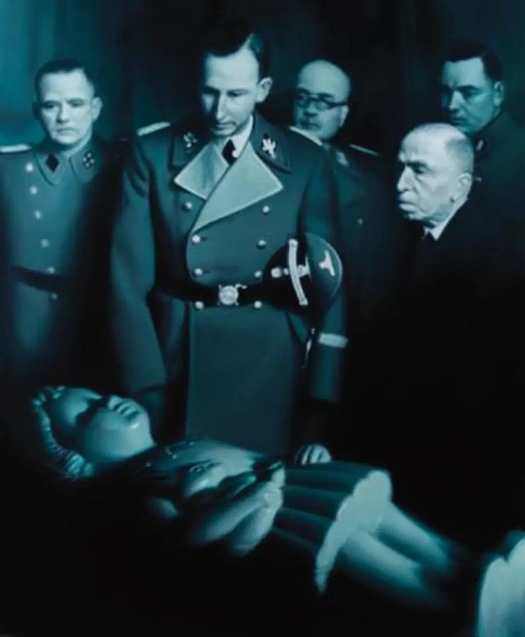 One of the pieces featured in this exhibition is Gottfried Helnwein's, "Heydrich Contemplating Golem's Daughter", (2008).
