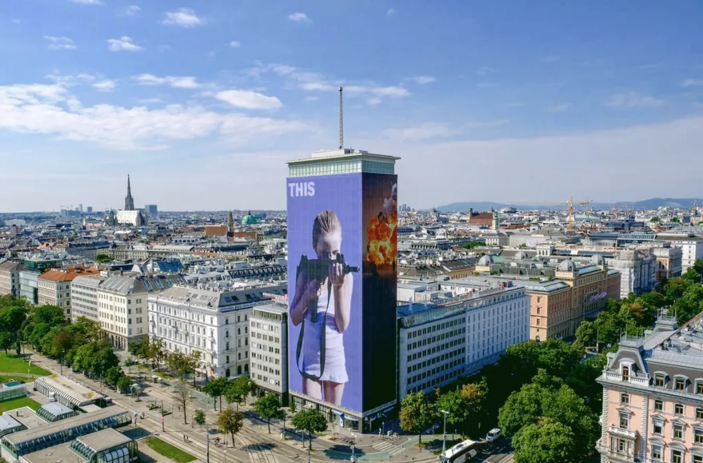 Il committente delle installazioni è la potente società VIG (Vienna Insurance Group), tradizionale inquilina del super-edificio, commissionando il lavoro ad artisti di successo, austriaci e non. Ci son passati Christian Ludwig Attersee, Robert Hammerstiel, Hubert Schmalix, Dorota Sadovska, Arnulf Rainer, Mihael Milunovic e altri, artisti selezionati per le rispettive capacità tecnico-creative, doti adatte a sviluppare opere su una superficie perimetrale di 4mila metri quadrati, sapendo inquadrare in questa sorta di display da fantascienza lo spirito, i sogni o le afflizioni di un vissuto sociale.