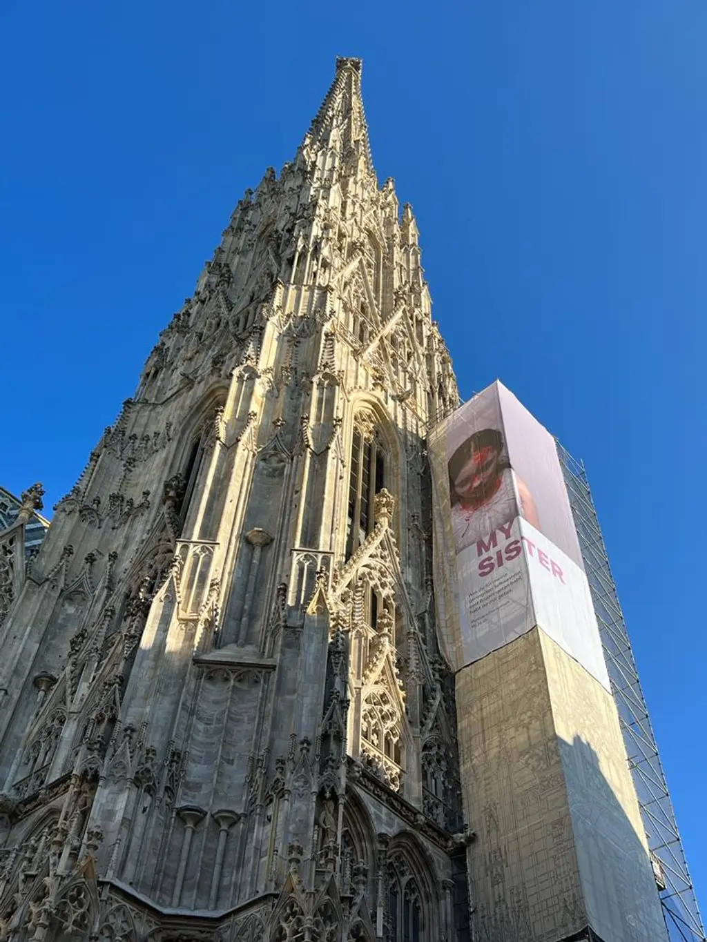 Der international bekannte Künstler Gottfried Helnwein setzt am Stephansdom ein Zeichen gegen Gewalt an Frauen und Mädchen. Ab Dienstag wird am Südturm des Doms ein großflächiges Plakat angebracht, auf dem der immer wieder mit Schockeffekten arbeitende gebürtige Wiener und seit 2004 irische Staatsbürger ein verletztes Mädchen mit Blutflecken darstellt. Darunter die um Empathie werbende Aufschrift "My Sister" und das Jesuswort aus dem Matthäusevangelium "Was ihr für meine geringsten Schwestern und Brüder getan habt, habt ihr mir getan" (Mt 25,40). Das Plakat soll bis 9. Jänner 2023 am Gerüst des Hochturms zu sehen sein.
