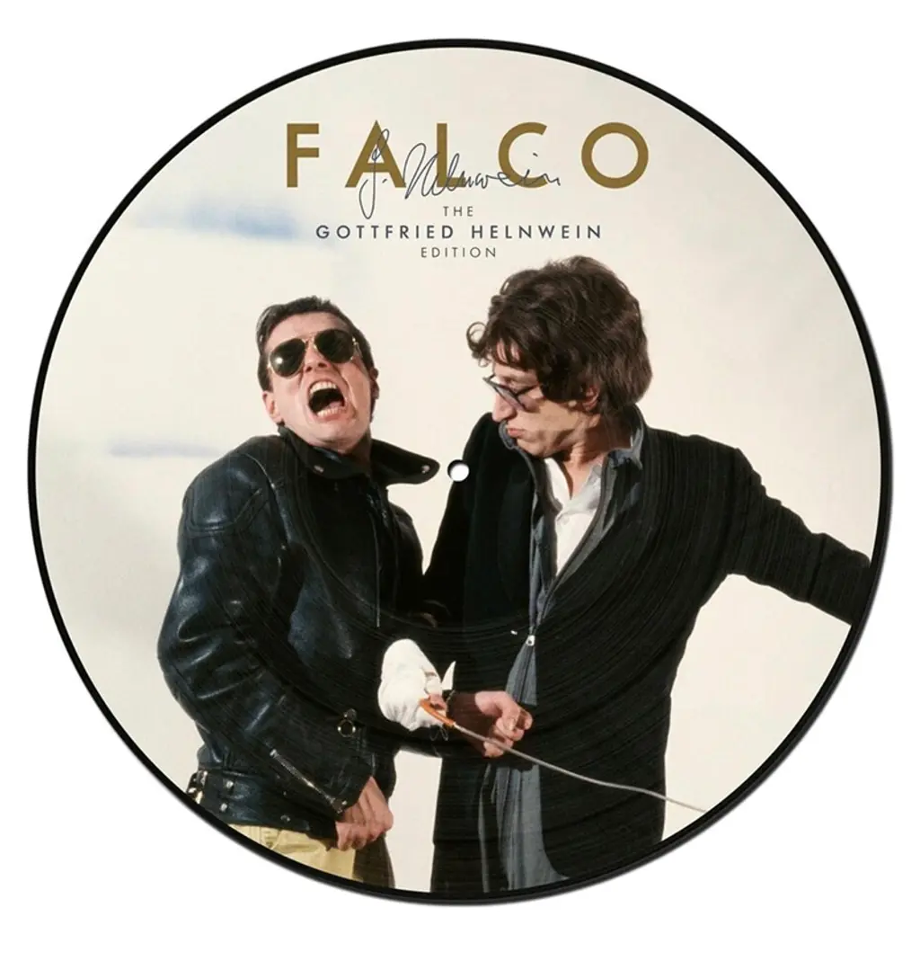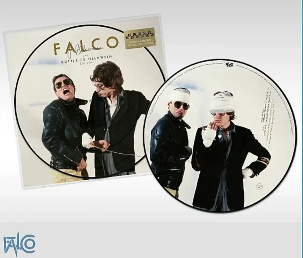 „Meine sehr verehrten Damen und Herren. Liebe Mädel und Buben. Liebes kulturinteressiertes Publikum. Ich habe die große Ehre heute ihnen einen der wirklich letzten Künstler vorzustellen: Gottfried Helnwein.“ 1984 filmte Falco, im Atelier von Helnwein ein TV-Special für das damals sehr populäre ORF TV-Jugendmagazin „Okay“ . Helnwein knipste dabei natürlich auch Falco. Eines davon ziert jetzt das Cover der „neuen“ Falco-LP.