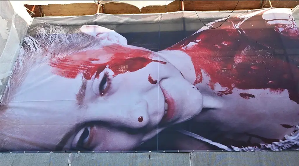 Am Montag wurden in Gmunden Haken auf den Fassaden des Rathauses und des Stadttheaters montiert. Kurze Zeit später hievte man ein Riesenplakat empor, darauf ein blutverschmiertes Kind! Beim „Krone“-Lokalaugenschein wird rasch klar: Das wird für Aufreger sorgen!