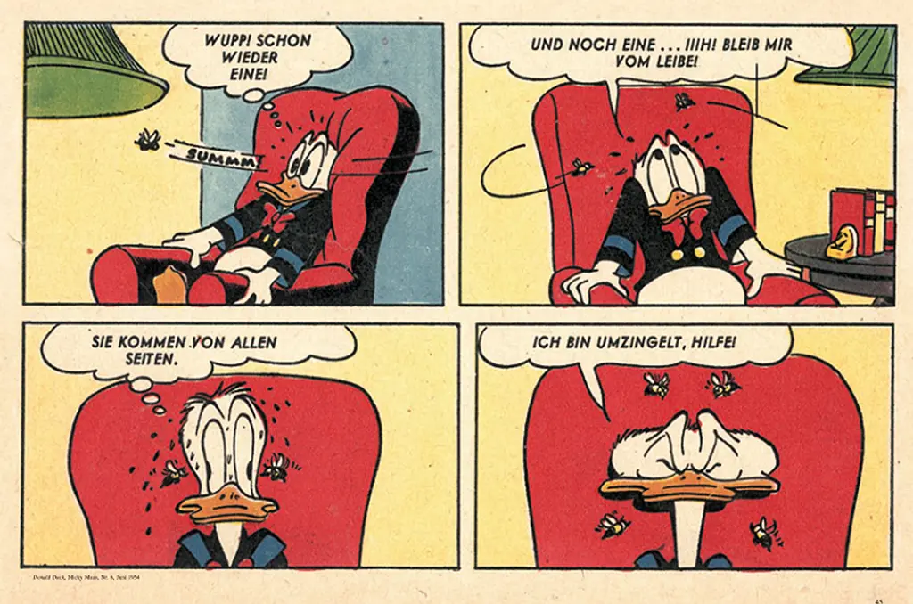 Eines grauen Tages im Wien der Nachkriegszeit, öffnete ich als 5 Jähriger mein erstes Micky Maus Heft, und betrat damit zum ersten Mal heiligen Entenhausner Boden. Und hier traf ich den Mann, der mein Leben von Grund auf verändern, und meiner Existenz einen Sinn verleihen sollte: Donald Duck. Und obwohl er gar nicht aussieht wie ein Mensch, sondern eher an eine Ente erinnert, verkörpert er das Menschliche doch mehr als alle Werke der bildenden Kunst vor ihm. Es ist erstaunlich, daß dieser kleine künstliche Erpel ein so viel besserer Spiegel der menschlichen Seele ist. An ihm erkennen wir unsere Ängste, unsere Unsicherheiten und Schwächen, unsere Dummheiten und Eitelkeiten, unseren Neid und unsere Einfalt. Aber auch jene Starrköpfigkeit, mit der wir nach jeder Niederlage, nach jedem Scheitern wieder aufstehen und von neuem beginnen.