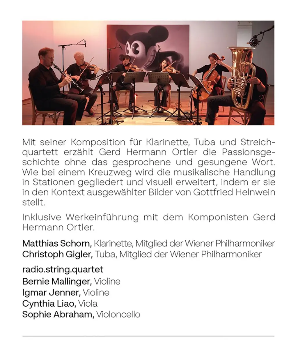 In die abstrakte Sprache von Musik transformiert, berichtet die „Passion“ von Gerd Hermann Ortler von Grausamkeit, Gewalt und unendlichem Leid. Die trotz aller kammermusikalischen Sensibilität gewaltige Musik des großen Komponisten ist inspiriert und gesättigt vom tiefen Schmerz der Gemälde Gottfried Helnweins. Ortler lässt den Klang dieser albtraumhaften, somnabulen Bildwelt ertönen: Die Passion - das Kainsmal des schuldigen Menschen - wird zum erschütternden Hörerlebnis.