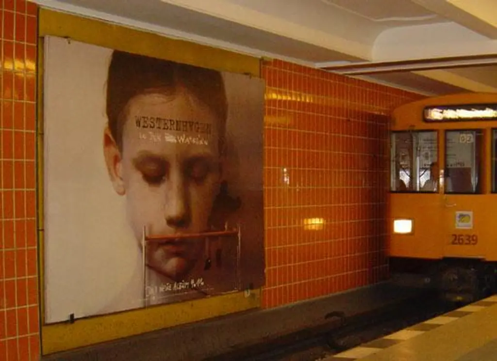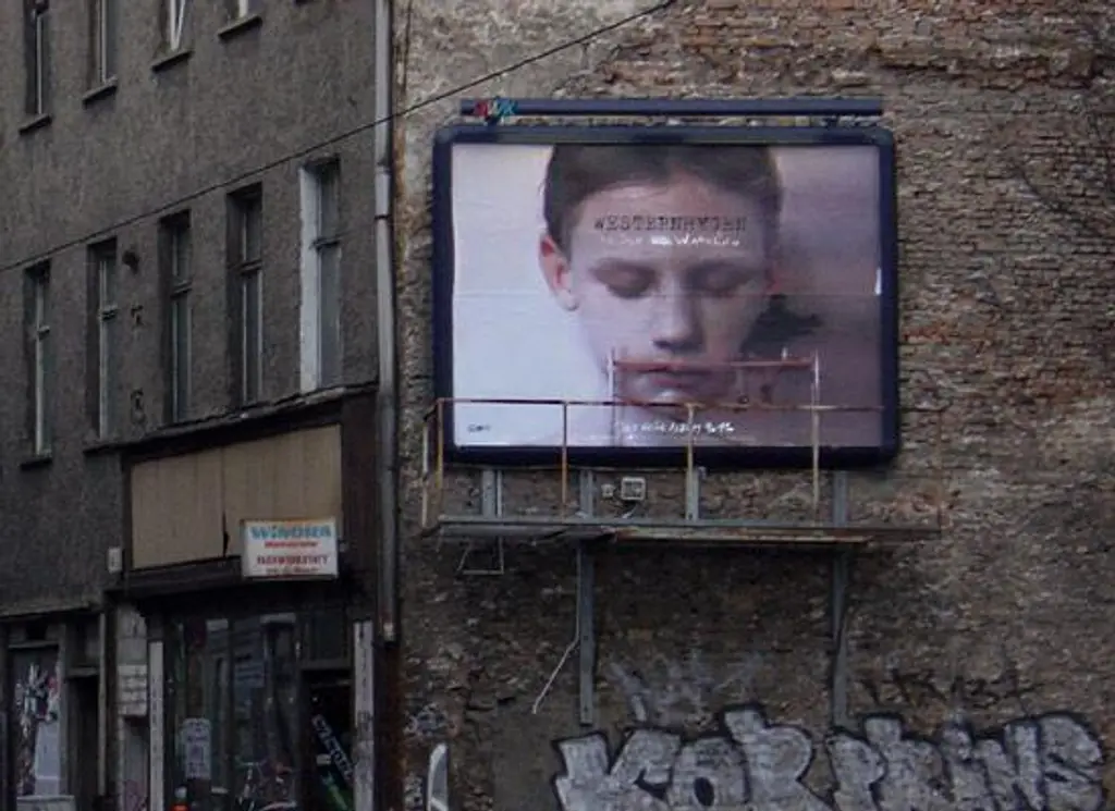 Westernhagen-billboards with Helnwein's Head of a Child all over Germany