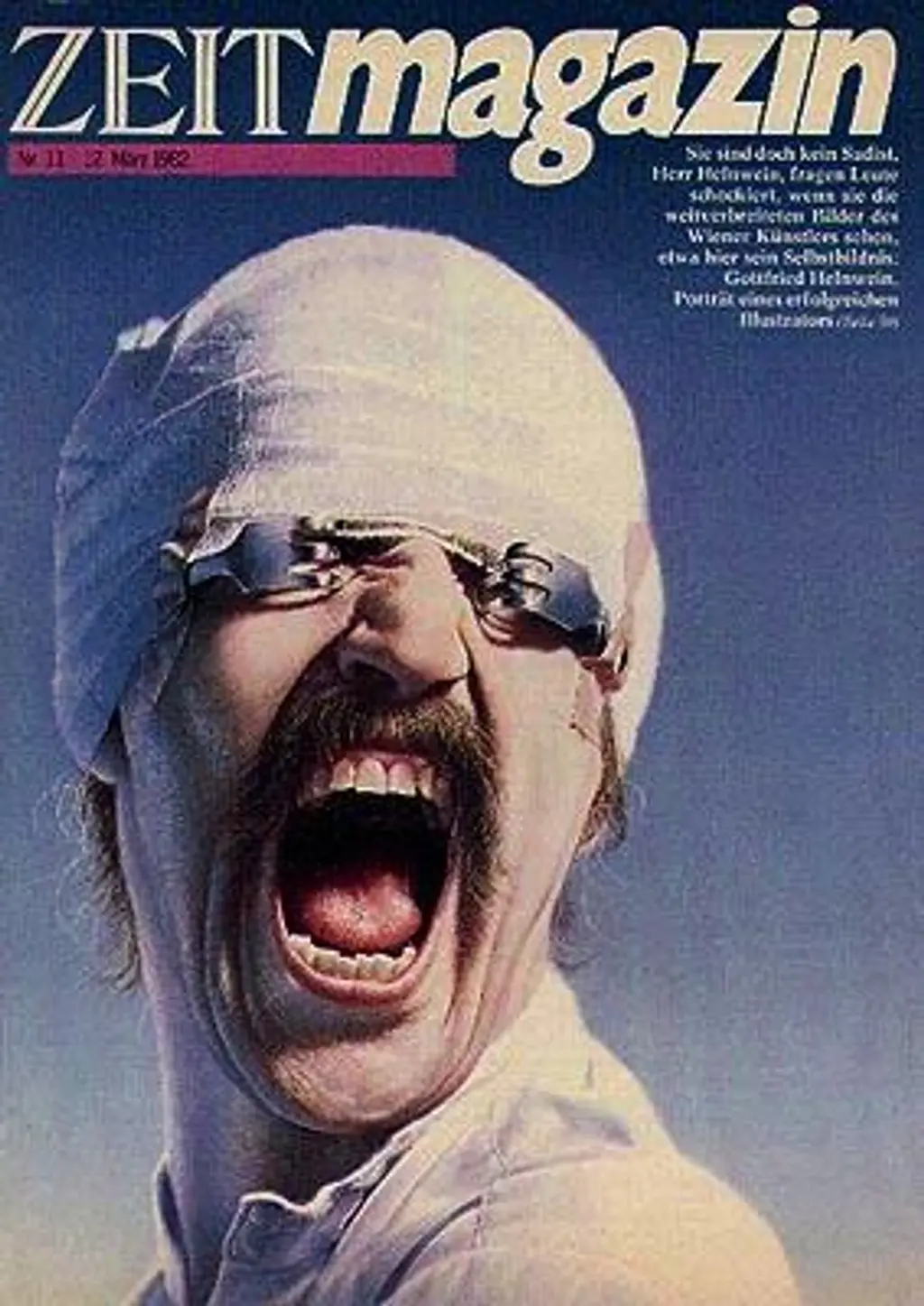 Für eine Titelgeschichte der österreichischen Zeitschrift "Profil" zum Thema Selbstmord malte Helnwein ein Kind, das sich mit einer Rasierklinge die Pulsadern aufschneidet. Noch heftiger entrüsteten sich die Leser wenig später über sein Titelbild zum Thema "Vorschulerziehung: Läßt sich Intelligenz manipulieren?" - ein von Erwachsenenhänden zusammengedrücktes Kindergesicht."Affront des guten Geschmacks", "brutale Schmutzereien", "Beleidigung des Menschenantlitzes schlechthin" - solche Leserproteste machten Profil-Chef Oscar Bronner ziemlich ratlos: "Wir haben im Laufe der Zeit die wildesten Skandale dieses Landes penibel beschrieben, keiner dieser Berichte löste auch nur annähernd so eine Reaktion aus".