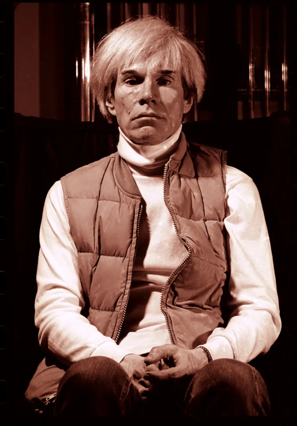 "Andy (Warhol) invited me to the factory in New York 1983 and after he told me how he loved my work, he asked me to follow him into an empty room where we sat down opposite to each other and he just froze and he didn't say anything and he didn't move. We sat there in silence for some time and I didn't know what to do - at first it was strange and it felt kind of awkward, but then slowly everything started to transcend and the tension dissipated and nothing seemed important anymore. Andy looked like a wax-dummy in the posture of a pharaoh that had been dead since thousands of years - the room around us became darker and darker and the white of Andy's face and hair got a glow so intense that it started to burn my eyes. I realized that we were floating now somewhere in outer space and nothing mattered anymore and I raised my Nikon and shot."