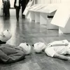 With few fellow students and several activists, Helnwein stages a rebellion at the Akademy of Fine Arts in Vienna. The trigger was the refusal of the professors to allow student representatives a say in the entrance examinations. The event is carefully planned and choreographed by Helnwein. Professors are locked in, doors are set a blaze, the building is filled with smoke, paint splattered on the walls, windows smashed and serious damage is done. Panic breakes out and Riot police moves in. The Austrian media reported on the “student revolt at the Academy of Fine Arts". The next day Helnwein and his colleagues get picked up by custodians of the university and charged.