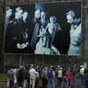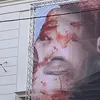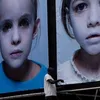Fotokunst von Gottfried Helnwein auf Fassade von Oper, Schauspielhaus und Volkskundemuseum in Graz im Rahmen von UN-Kampagne