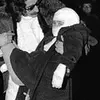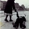 R. Höpfinger and E. Regnier hand out sweets and toys bearing Helnwein pictures of wounded children to passers-by in Zürich.