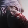 Helnwein cuts his face and hands with razor blades, etching- and wood-engraving tools. First bandaging happenings.